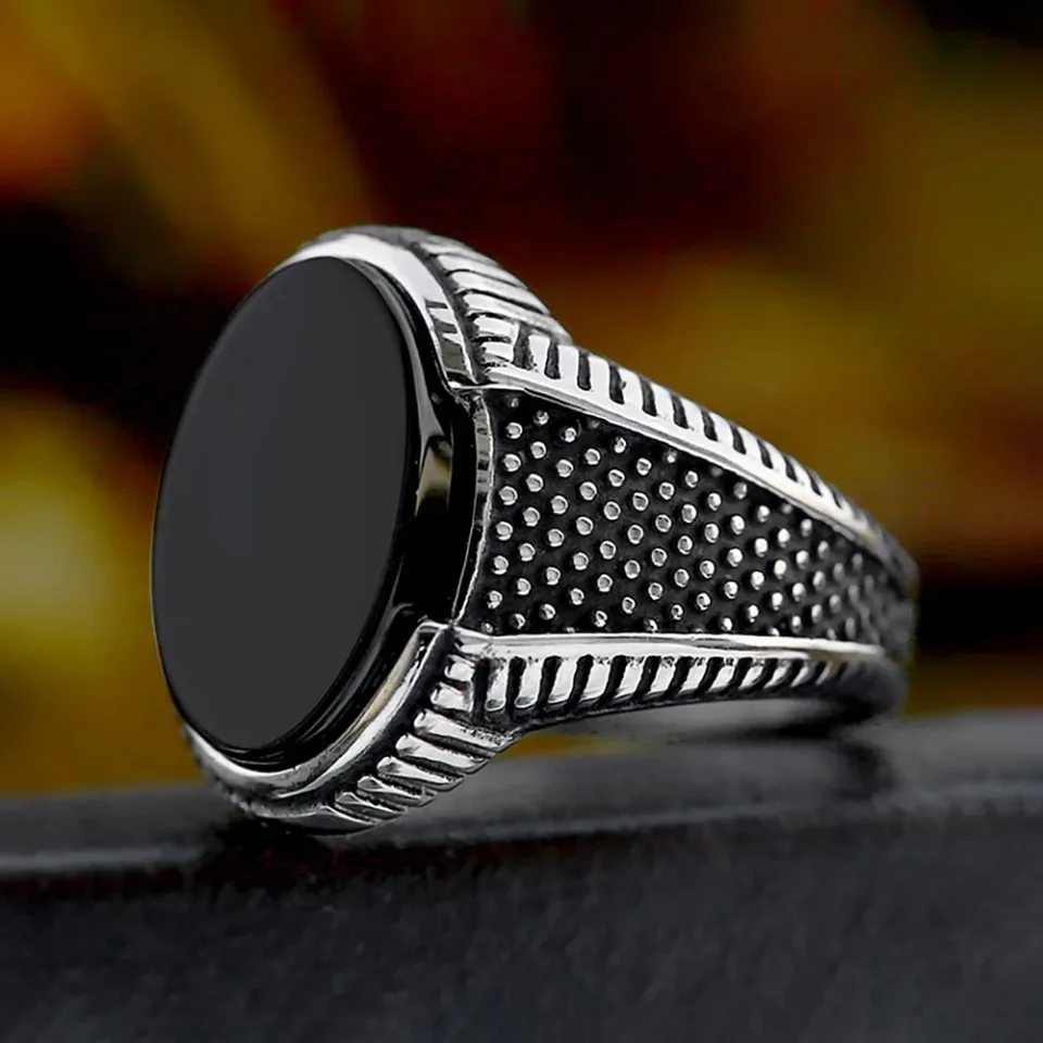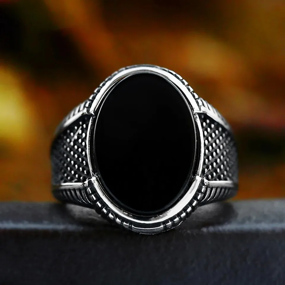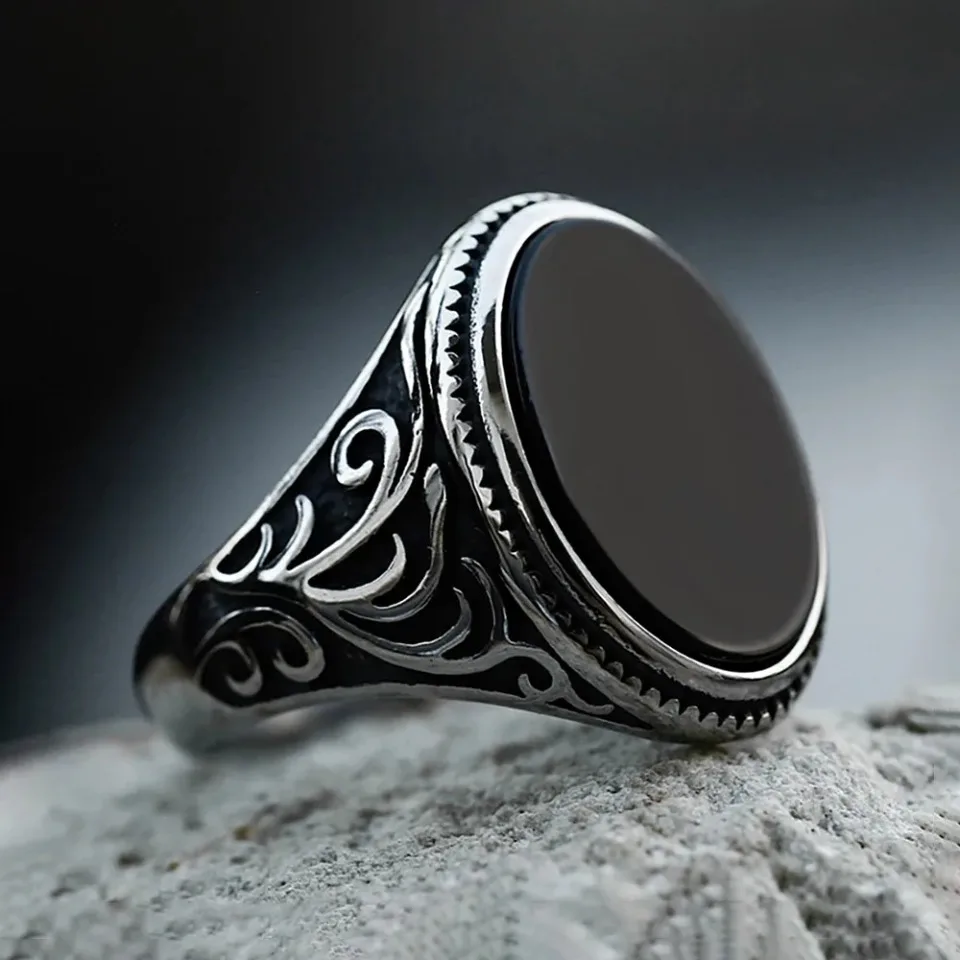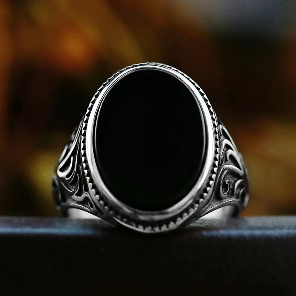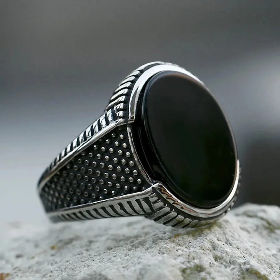 Name: Vintage Punk 316L Stainless Steel Black Stone Ring Gothic Fashion Turkish Style Rings For Men Women Charm Party Jewelry Gifts