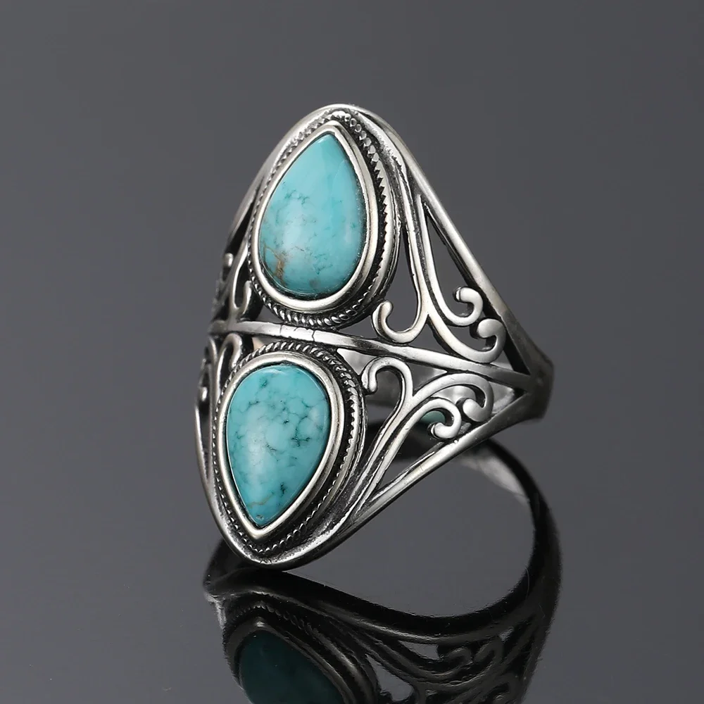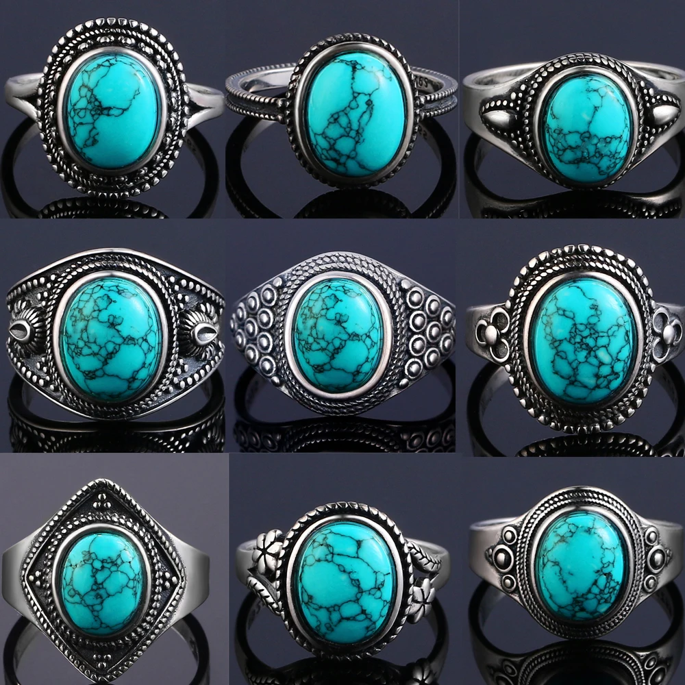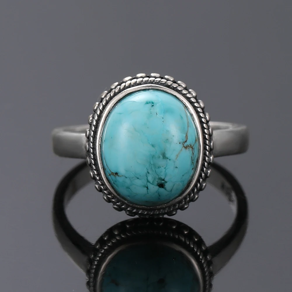 Vintage S925 Sterling Silver Ring Natural Turquoise Rings Luxury Jewelry Party Anniversary Birthday Gift for Women Man