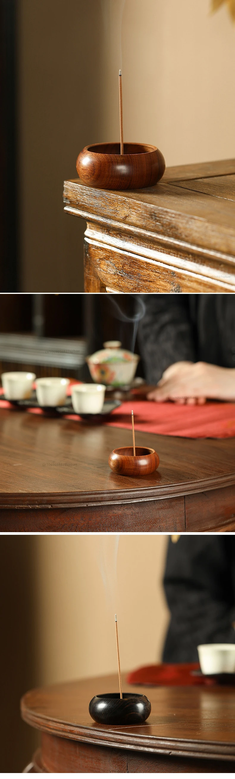 As the incense burns, the freshness and fragrance of the incense sticks quietly seep through the wooden passageways and encompass the room in which the burner is placed.