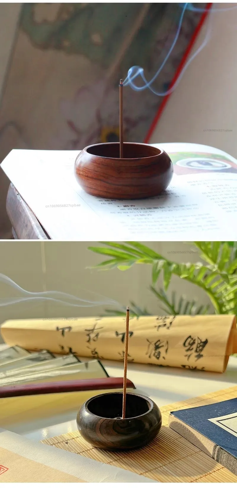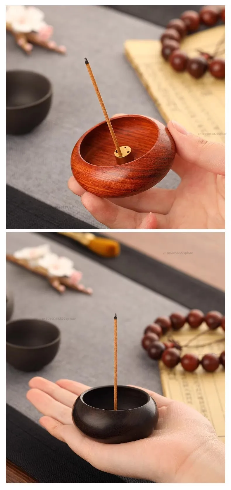 Wooden Bowl Type Mini Incense Holder Rosewood Incense Burner Stick Holder Bowl Shape Censer Home Decoration Smell Aromatic