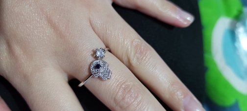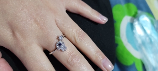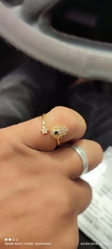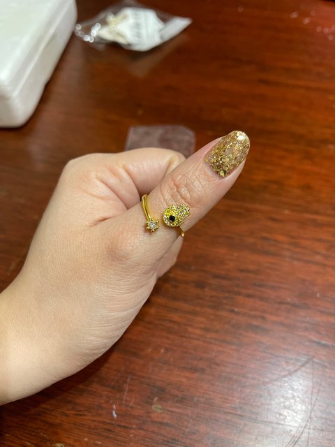 Cute and delicate ring, almost equal to the photo. I would say the color is a little more yellow. Very beautiful, I liked