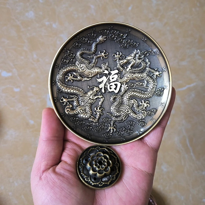 YXY Dragon and Phoenix Stick Incense Holder Chinese Zodiac Metal Tibetan Incense Burner Best for Collectibles Small Home Decor
